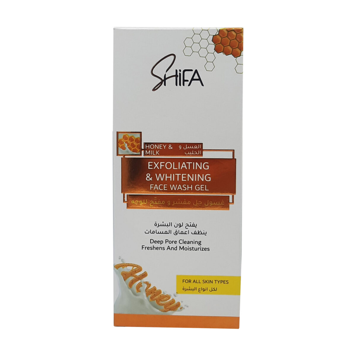 شفا غسول جل مقشر ومفتح للوجه بالعسل والحليب – Shifa face wash gel exfoliating & whitening honey & milk 150ml