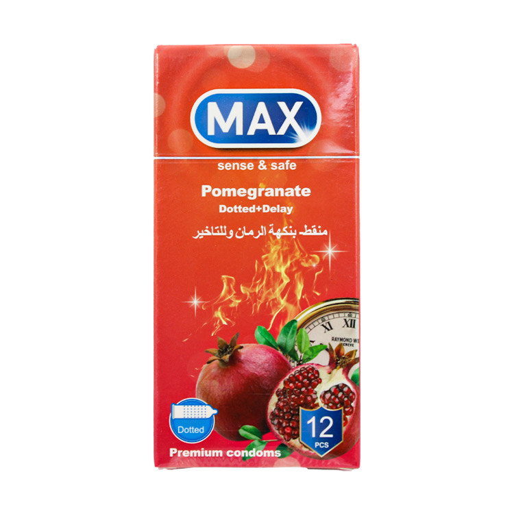 ماكس واقي منقط بنكهة الرمان والتاخير – MAX condoms pomegranate dotted + dalay 12pcs